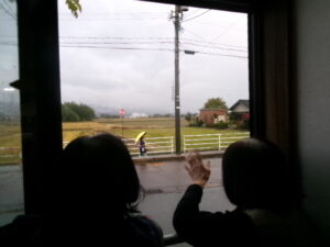 小雨の中、今日は1人だけちびっ子を見送りましたよ☔