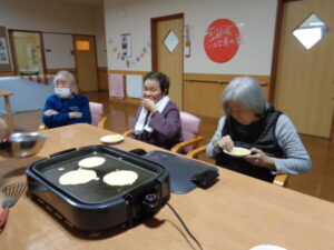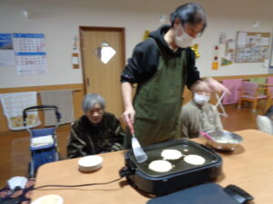 おやつは、焼き立てホットケーキ🍪のんびりはチョコフレークでした😋
