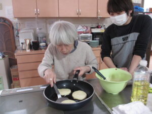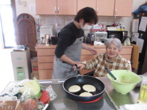 のんびりのおやつは、ホットケーキを焼きました!
