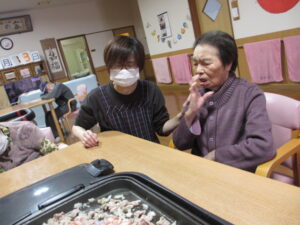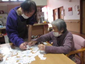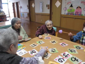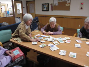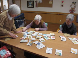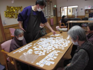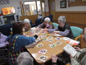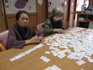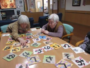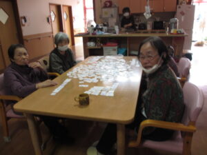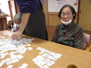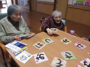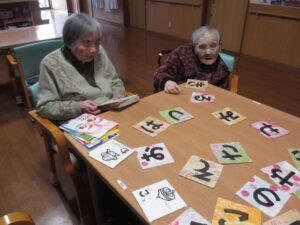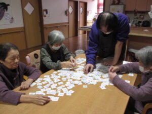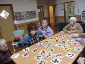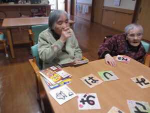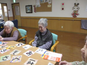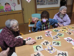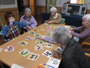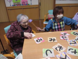 カルタは身を乗り出して取るHさん!