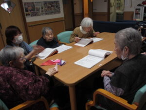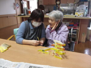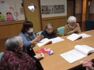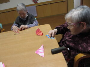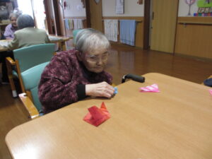 Yさんは、片手で上手に鶴を折ってくれるんですよ💖