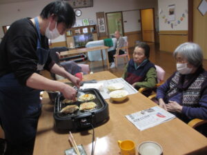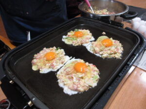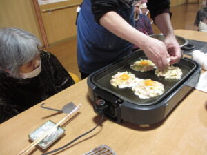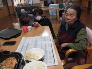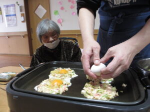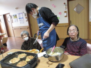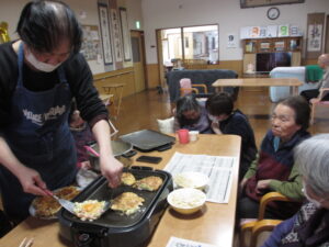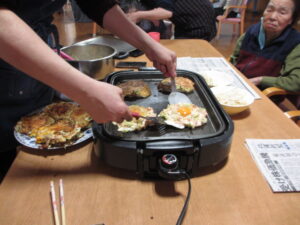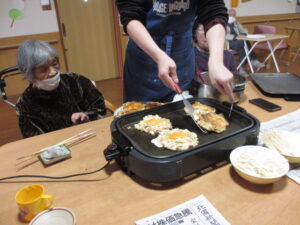ホームではお好み焼きを作っていました!