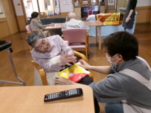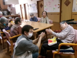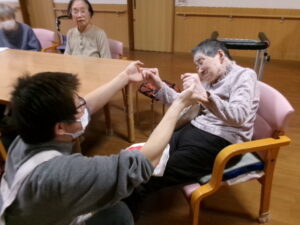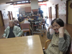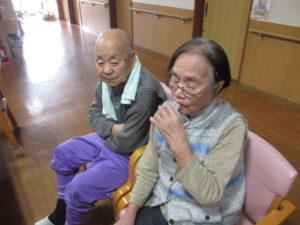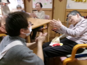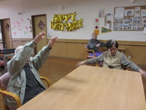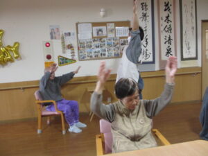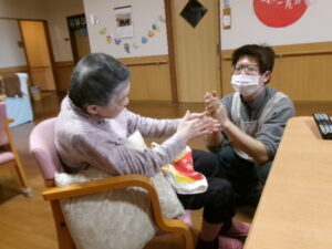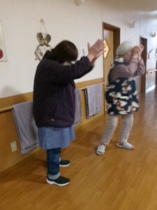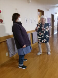 テレビ体操、あまり参加しないKさんですが、今日はマンツーマンで楽しんでいます🥰